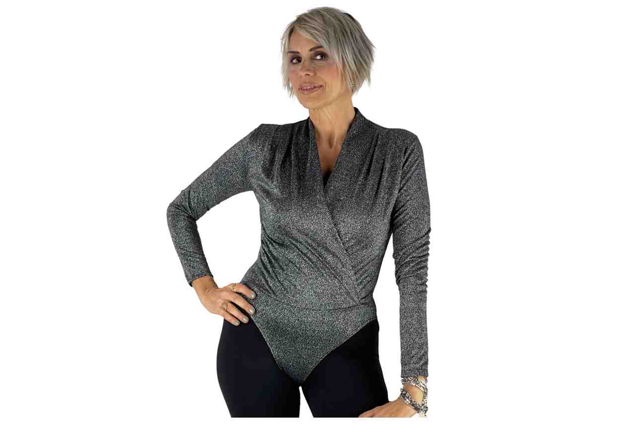 VERONICA RIZZI Body in filo lurex con scollo profondo.