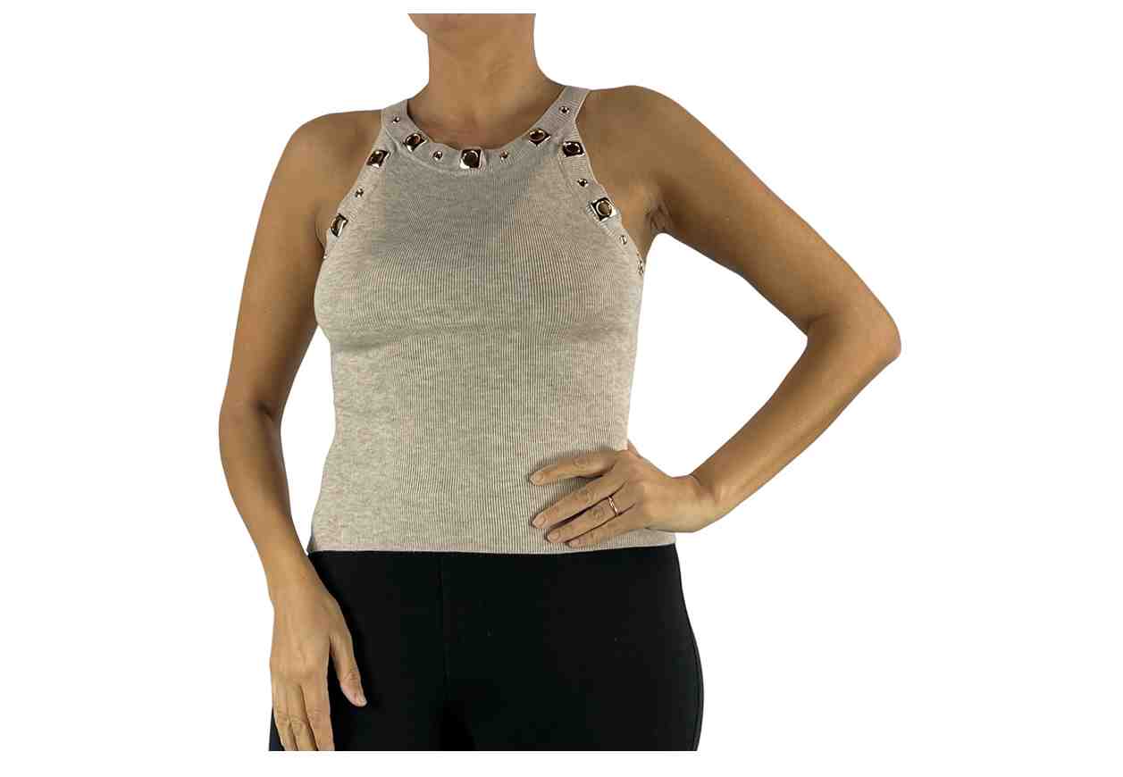 VERONICA RIZZI Canotta in maglia con inserti metallici.