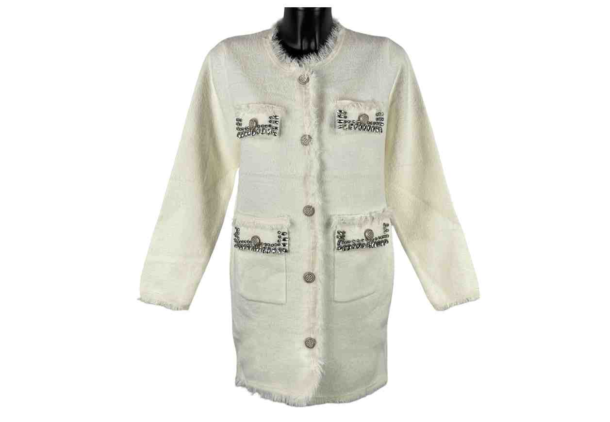 VERONICA RIZZI Cardigan lungo con strass e bottoni in dettaglio.