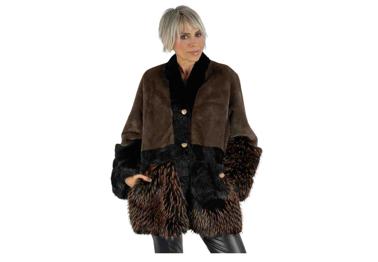 VERONICA RIZZI Ecopelliccia bicolore con tasche e bottoni.