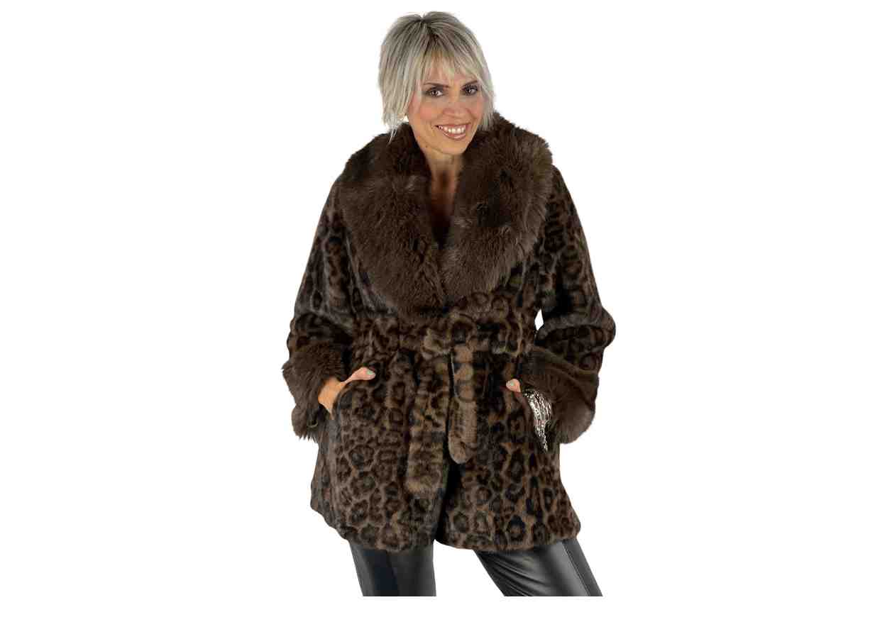 VERONICA RIZZI Ecopelliccia maculata con cintura in vita.