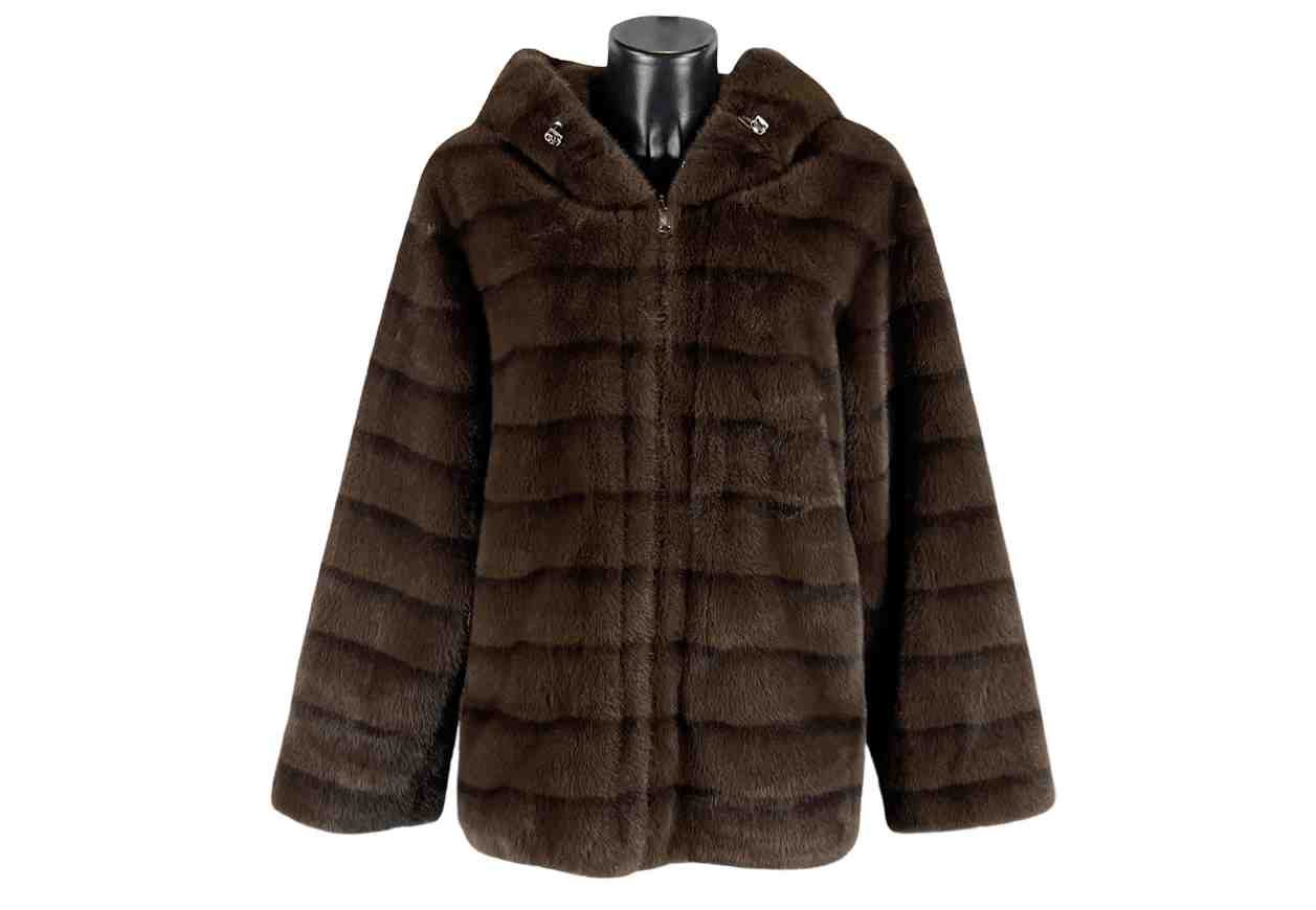 VERONICA RIZZI Ecopelliccia reversibile in tinta unita con cappuccio e zip.