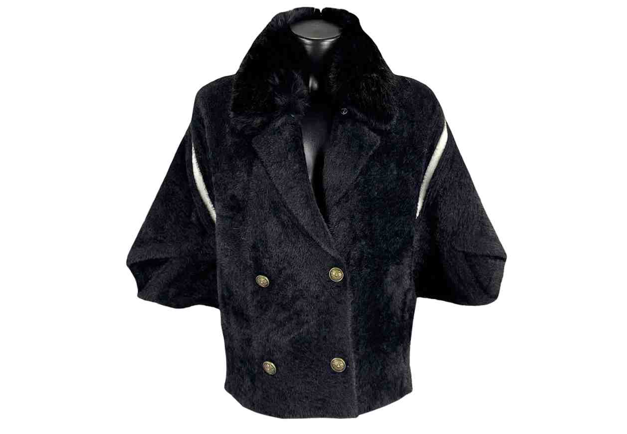 VERONICA RIZZI Giacca con collo in ecopelliccia e righe in contrasto, misto lana.
