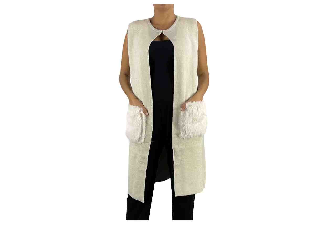 VERONICA RIZZI Maglia smanicata in tinta unita con ecopelliccia.