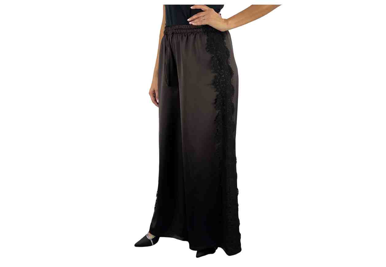VERONICA RIZZI Pantalone in tinta unita, simil raso con pizzo.