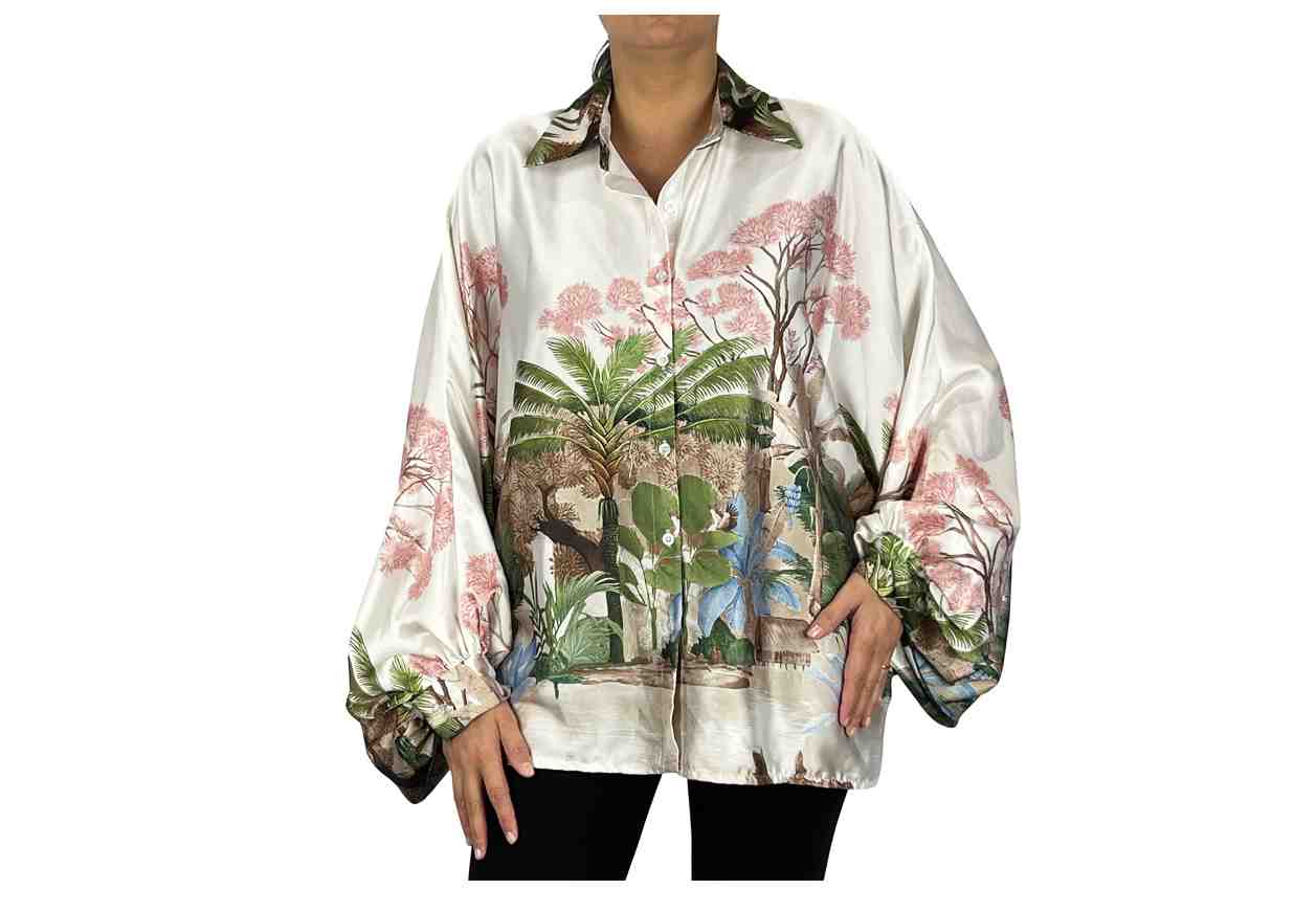 VERONICA RIZZI Camicia in fantasia, manica a pipistrello.