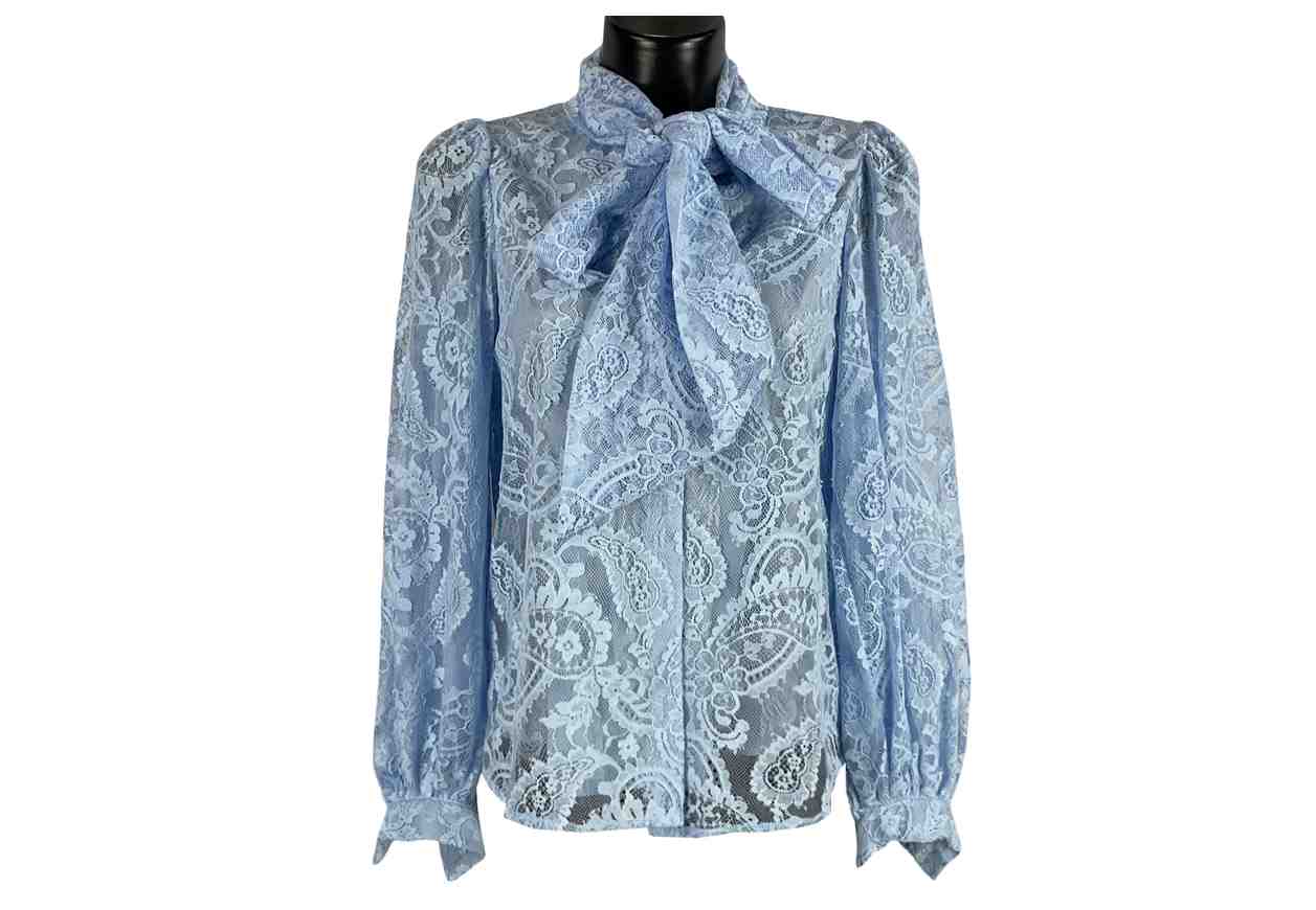 VERONICA RIZZI Camicia in pizzo con fiocco e manica a palloncino.