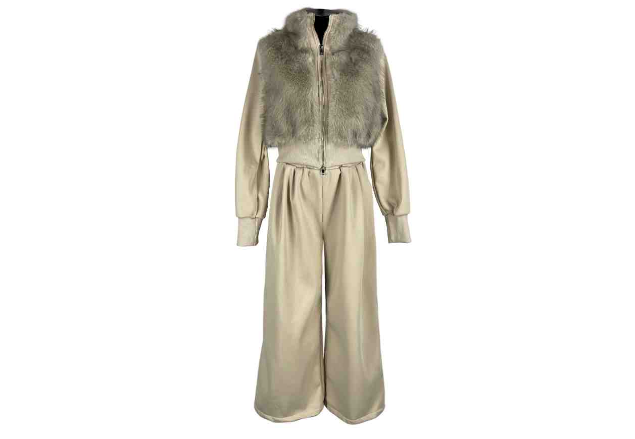 VR COMPLETO con maglia in ecopelliccia, pantalone ampio.