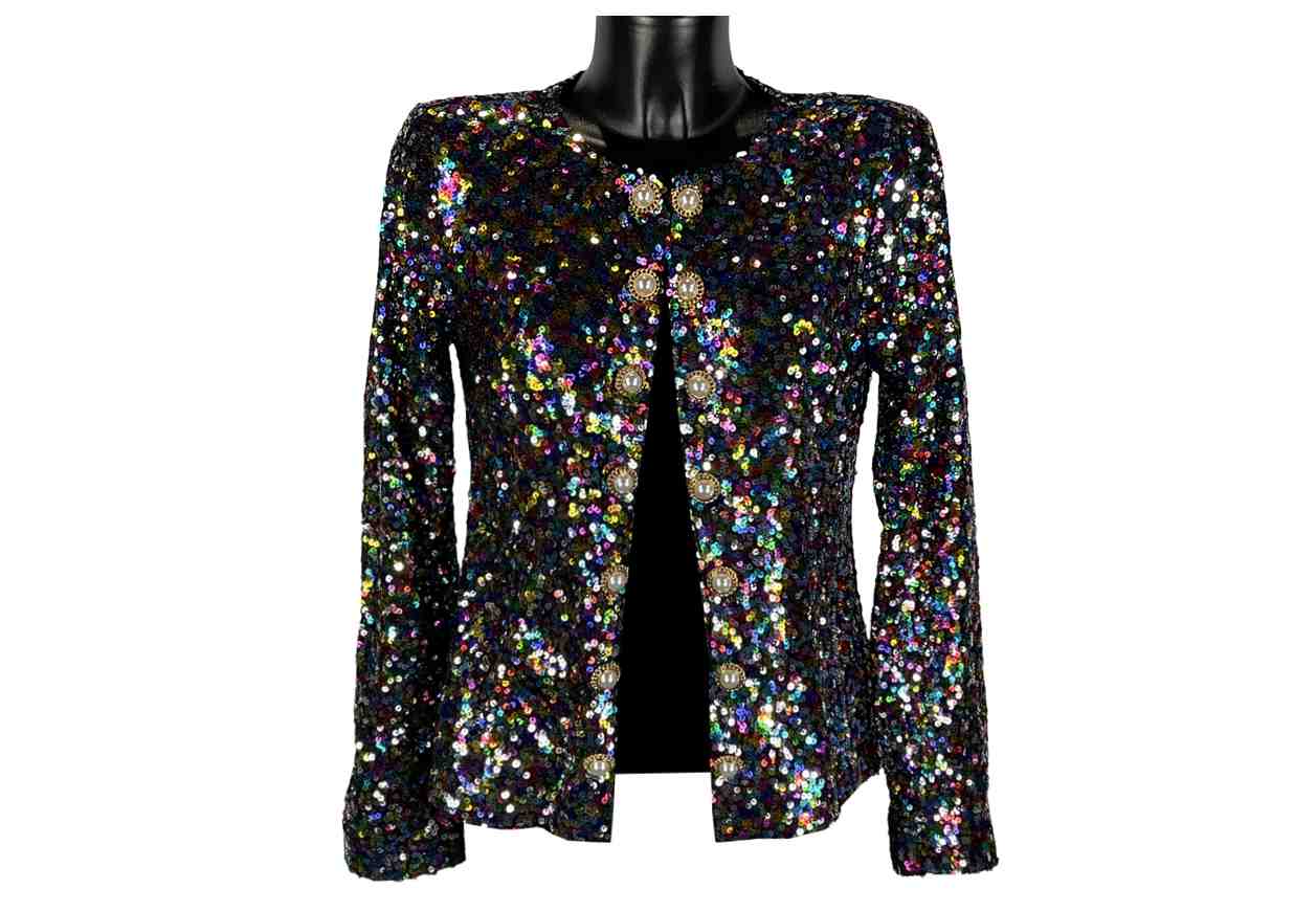 VR Giacca con paillettes con bottoni e perle.