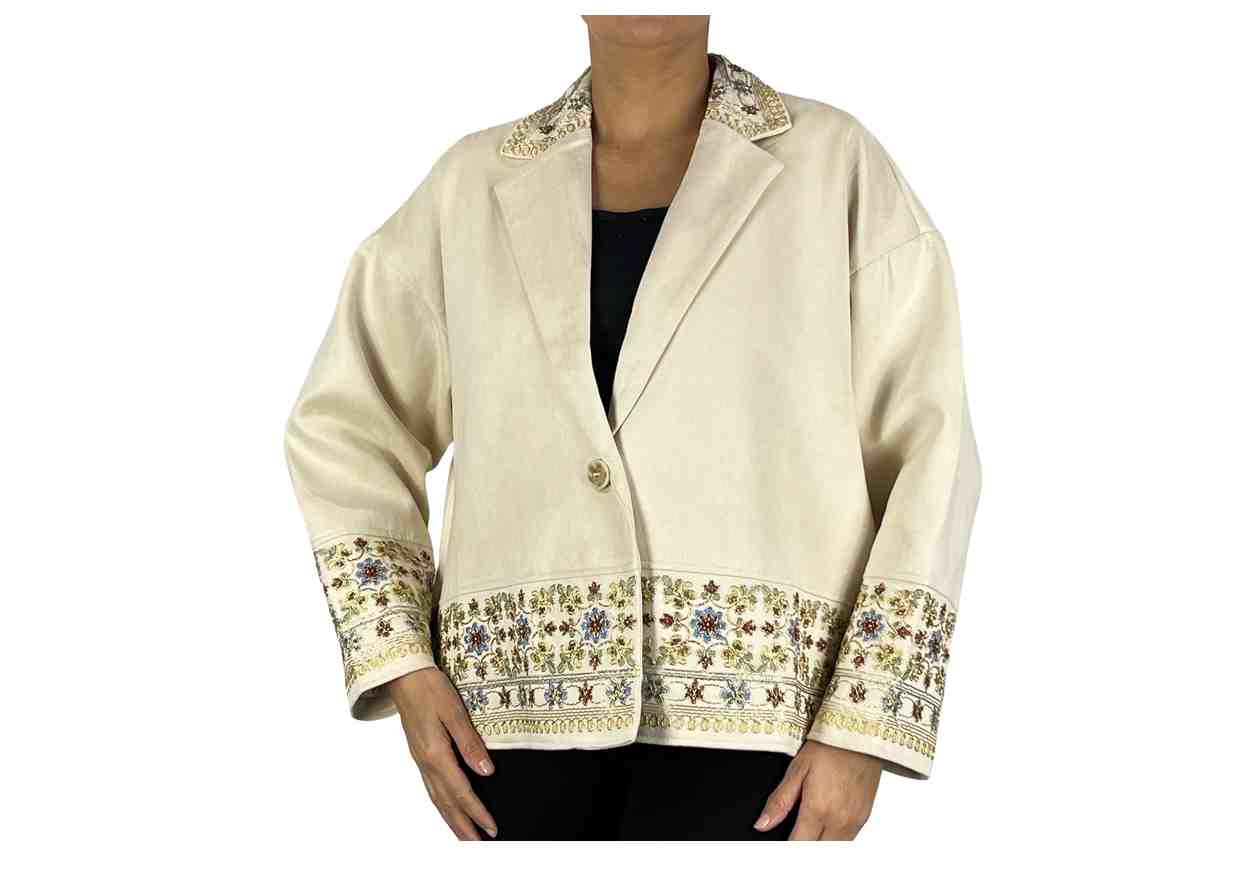 VERONICA RIZZI Giacca con paillettes con bottoni e perle.