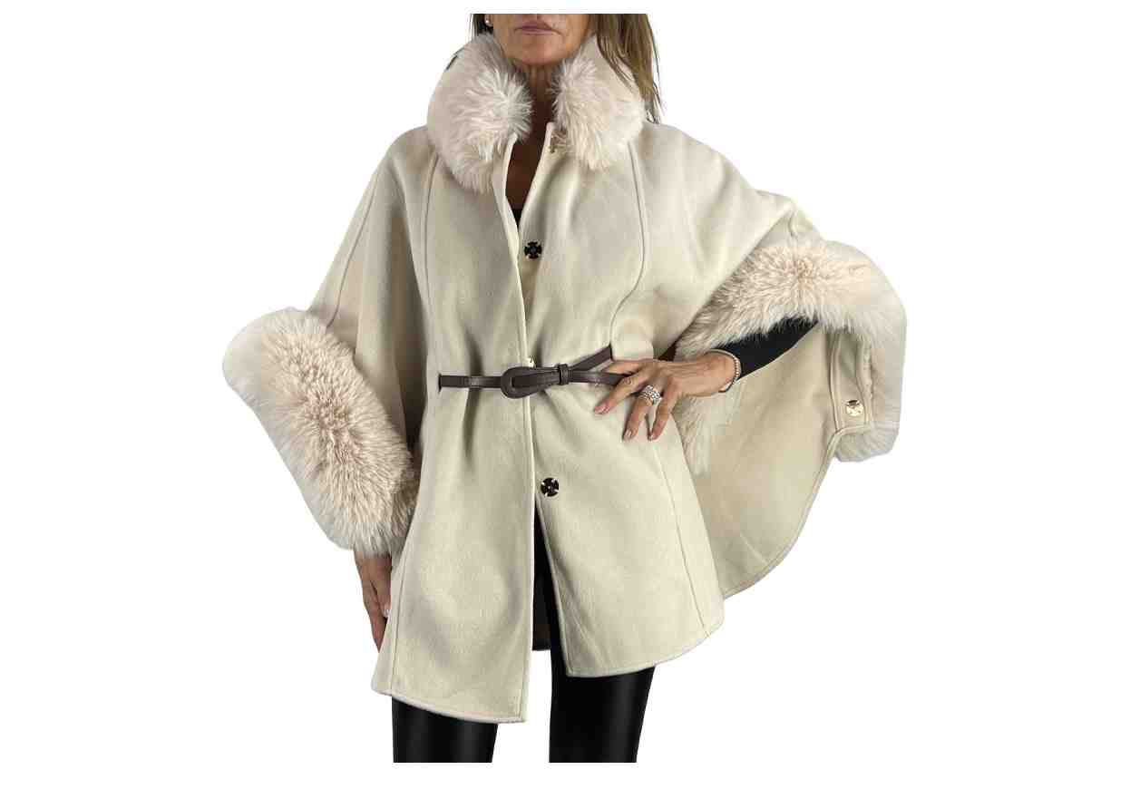 VERONICA RIZZI Mantella in tinta unita con inserto in ecopelliccia.